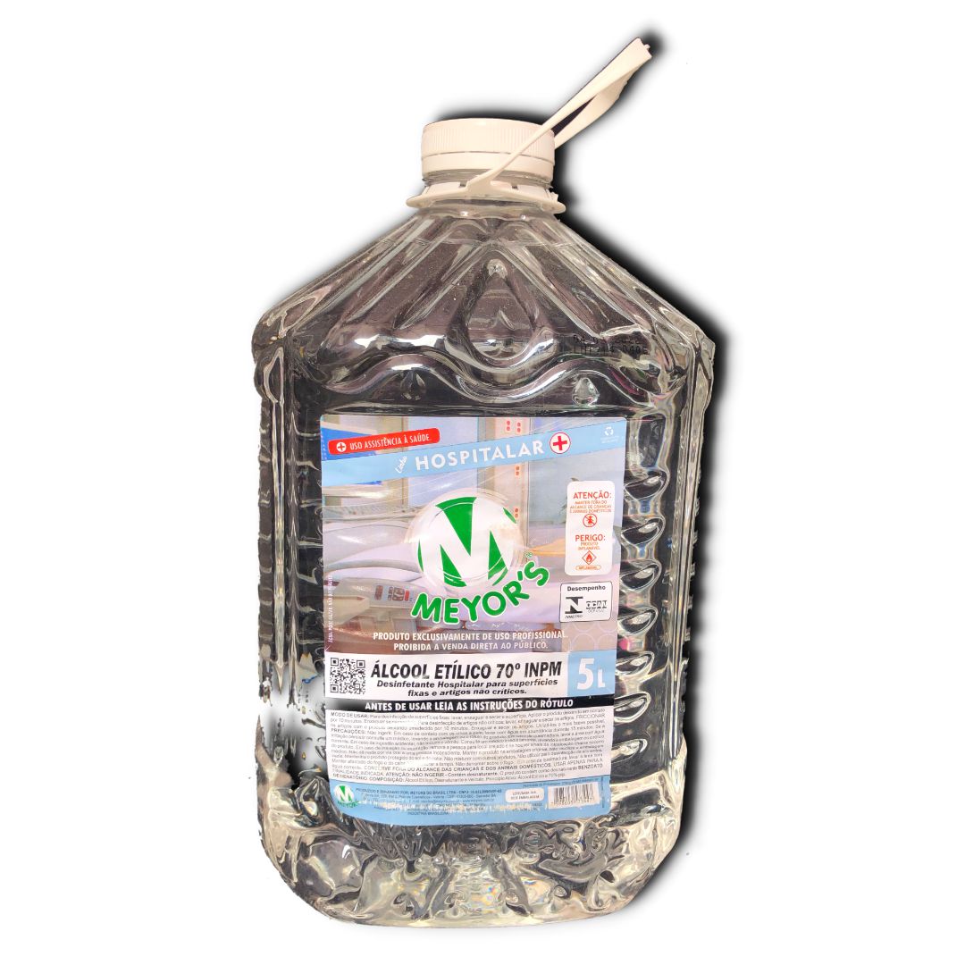 Álcool Etílico Hidratado 70º INPM 5 Litro desinfetante Hospitalar para superfícies fixas e artigos não críticos Elimina 99,99%.